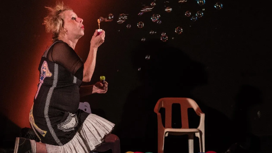One woman show où une adulte retranscrit les mots entendus de quand elle était petite, avec humour et émotions.